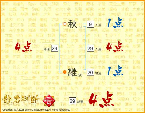 秋継さんの人運は29画の4点!
