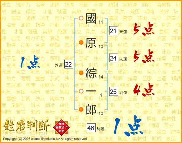 國原綜一郎さんの人運は24画の5点!