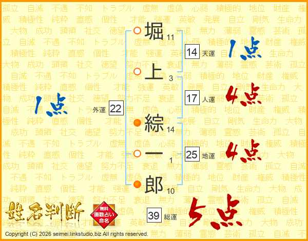 堀上綜一郎さんの総運は39画の5点!