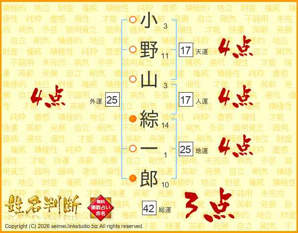 小野山綜一郎さんの人運は17画の4点!