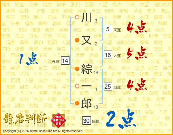 川又綜一郎さんの総運は30画の2点!