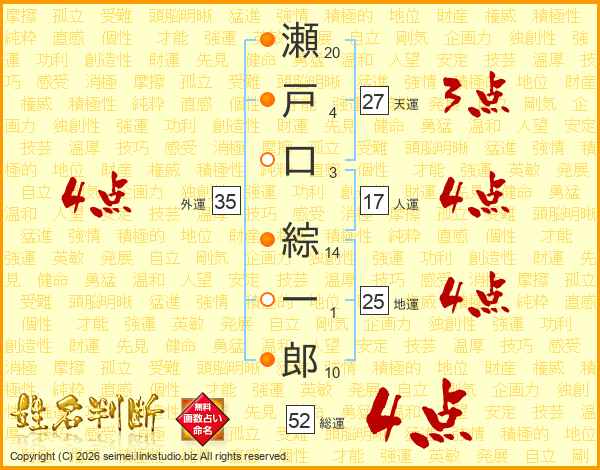 瀬戸口綜一郎さんの総運は52画の4点!