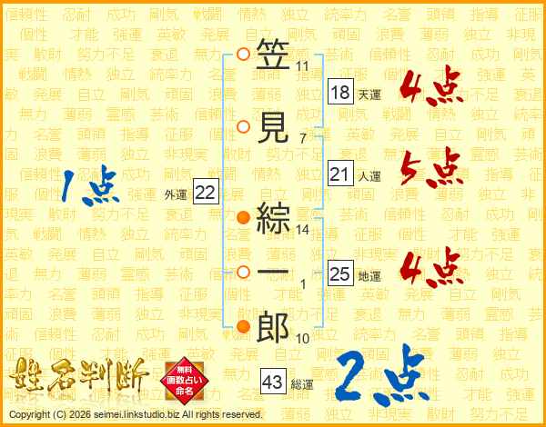 笠見綜一郎さんの人運は21画の5点!
