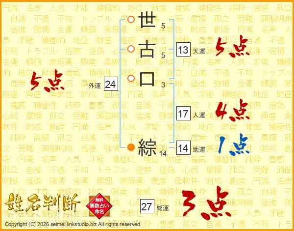 世(5画)古(5画)口(3画) 綜(14画)