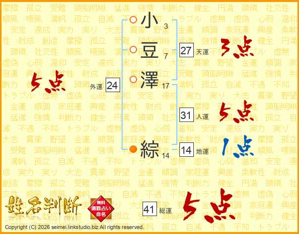 小(3画)豆(7画)澤(17画) 綜(14画)