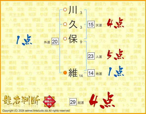 川久保維さんの総運は29画の4点!