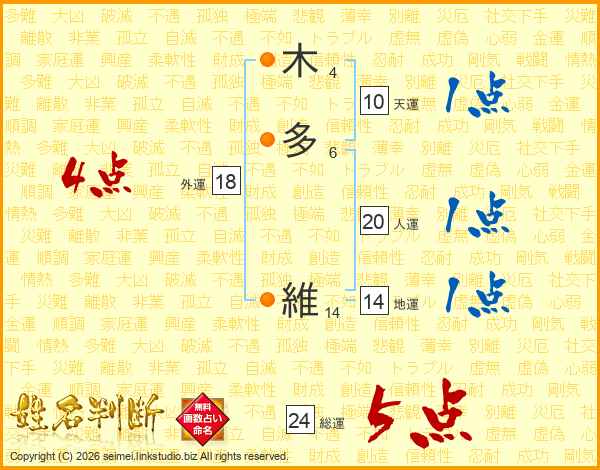 木多維さんの総運は24画の5点!