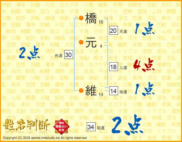 橋元維さんの天運は20画の1点!