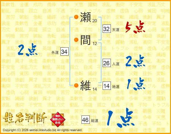 瀬間維さんの総運は46画の1点!