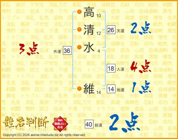 高清水維さんの総運は40画の2点!