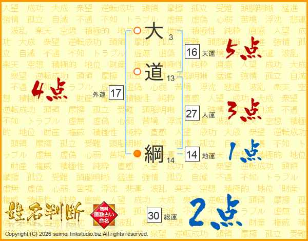 大道綱さんの総運は30画の2点!