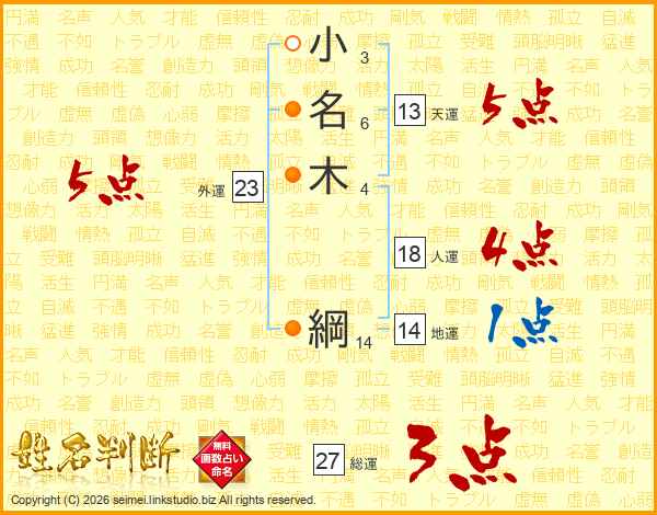 小名木綱さんの総運は27画の3点!