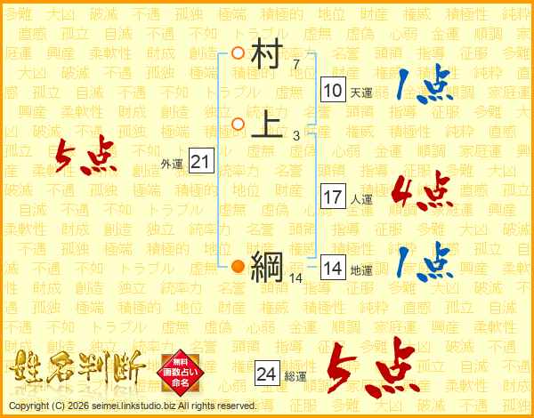 村上綱さんの総運は24画の5点!