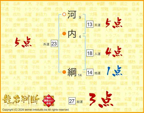 河内綱さんの総運は27画の3点!
