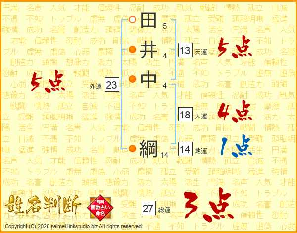 田井中綱さんの総運は27画の3点!
