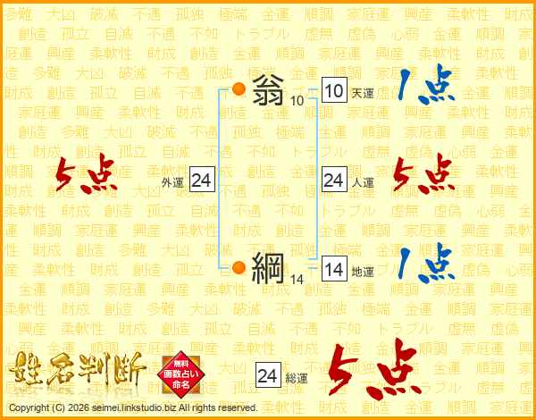 翁綱さんの総運は24画の5点!