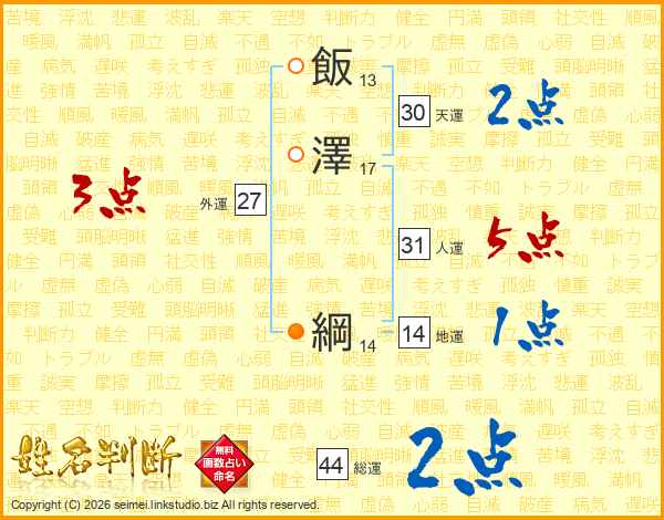 飯澤綱さんの人運は31画の5点!