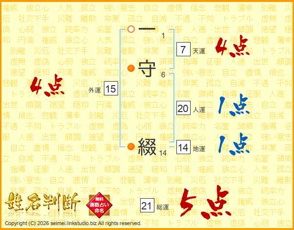 一守綴さんの総運は21画の5点!