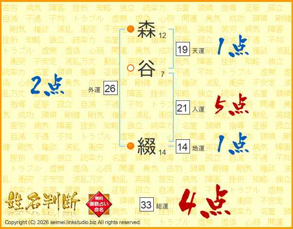 森谷綴さんの総運は33画の4点!