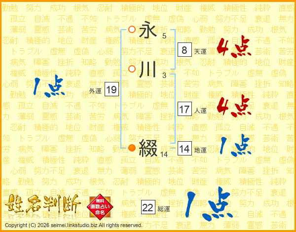 永川綴さんの総運は22画の1点!