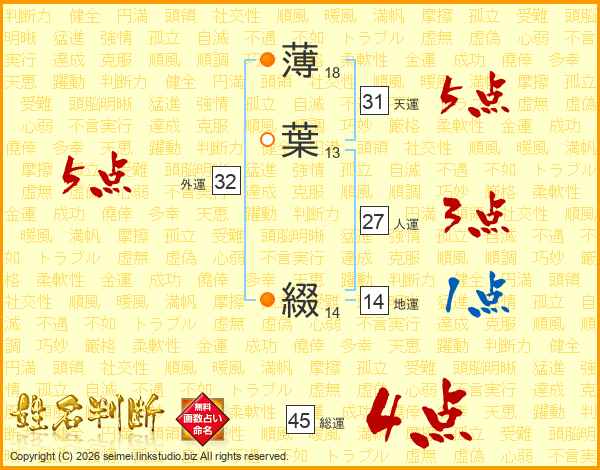 薄葉綴さんの総運は45画の4点!