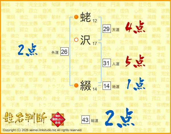 蛯沢綴さんの総運は43画の2点!
