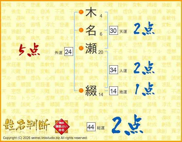 木名瀬綴さんの総運は44画の2点!