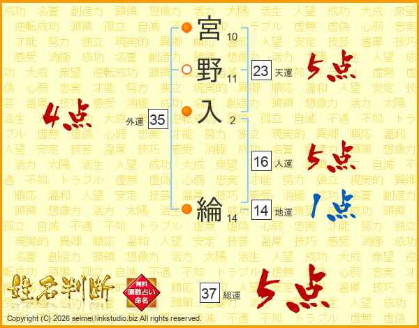 宮野入綸さんの総運は37画の5点!