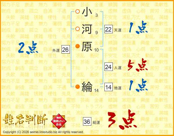 小河原綸さんの人運は24画の5点!