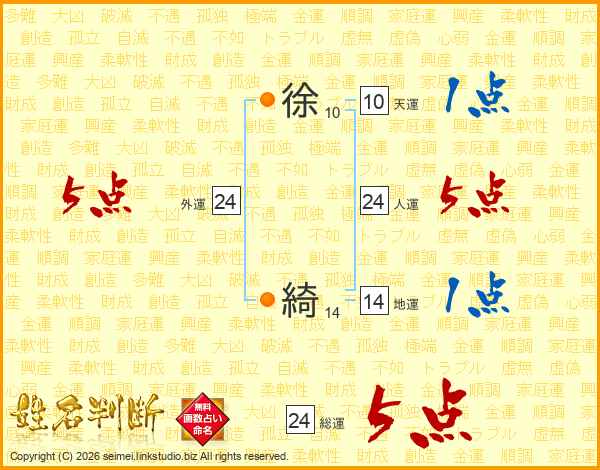 徐綺さんの総運は24画の5点!