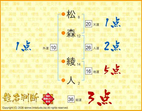 松(8画)森(12画) 綾(14画)人(2画)