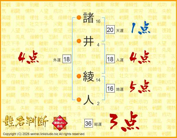 諸井綾人さんの外運は18画の4点!