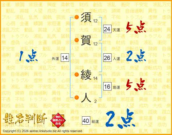 須(12画)賀(12画) 綾(14画)人(2画)