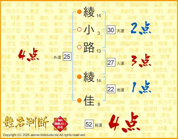 綾(14画)小(3画)路(13画) 綾(14画)佳(8画)