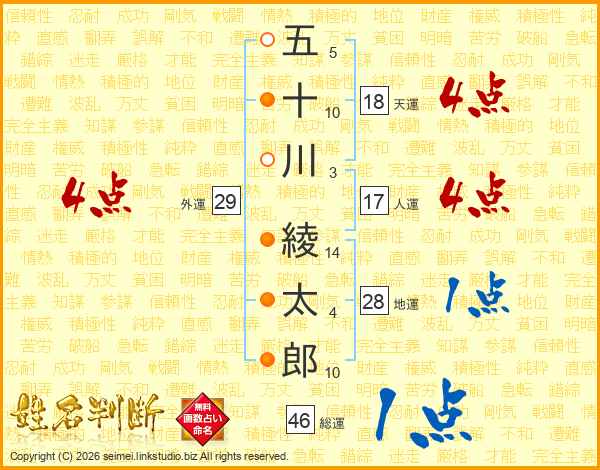 五十川綾太郎さんの総運は46画の1点!