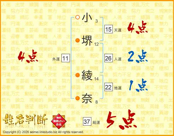 小堺綾奈さんの総運は37画の5点!