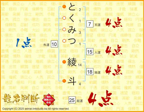 と(2画)く(1画)み(3画)つ(1画) 綾(14画)斗(4画)