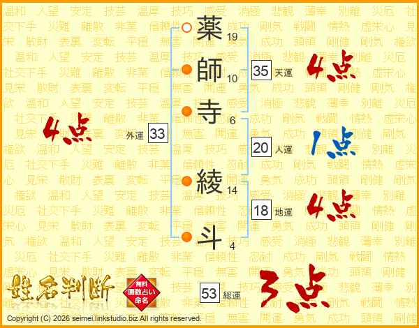 薬師寺綾斗さんの外運は33画の4点!