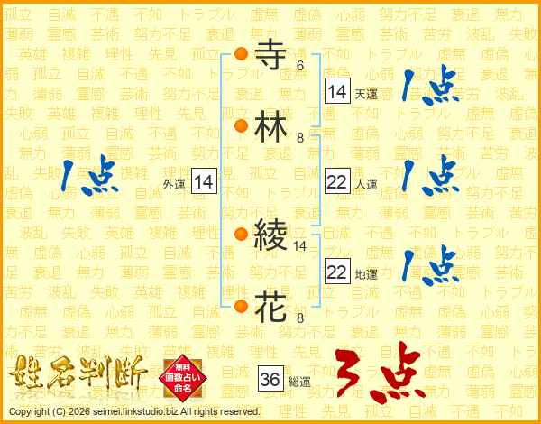 寺林綾花さんの天運は14画の1点!