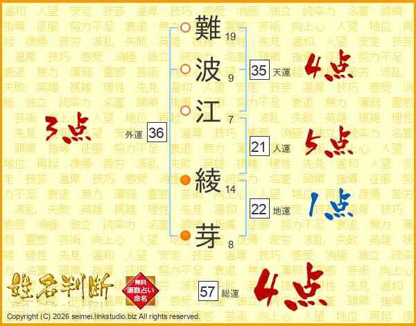 難波江綾芽さんの総運は57画の4点!