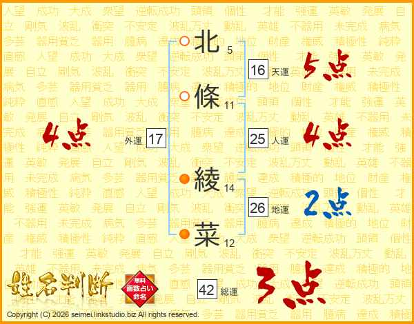 北條綾菜さんの外運は17画の4点!