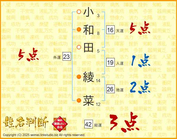 小(3画)和(8画)田(5画) 綾(14画)菜(12画)