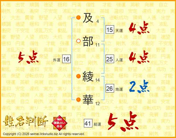 及部綾華さんの総運は41画の5点!
