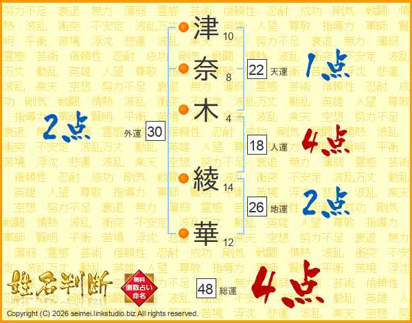 津奈木綾華さんの総運は48画の4点!