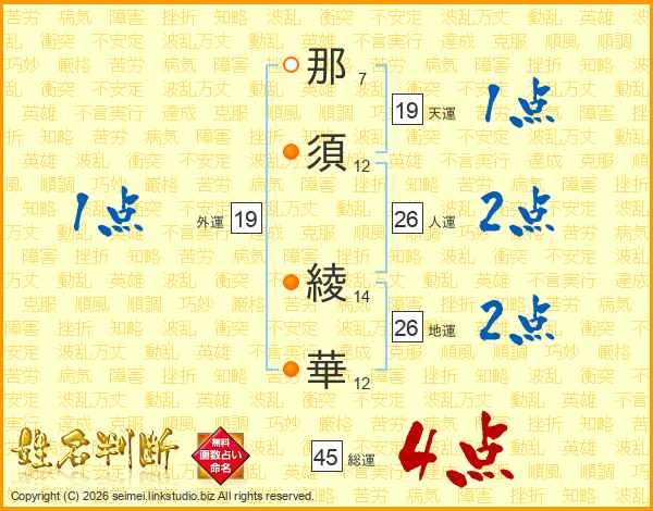 那須綾華さんの総運は45画の4点!