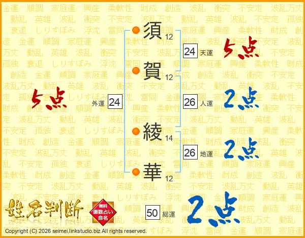 須(12画)賀(12画) 綾(14画)華(12画)
