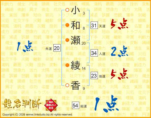 小和瀬綾香さんの総運は54画の1点!