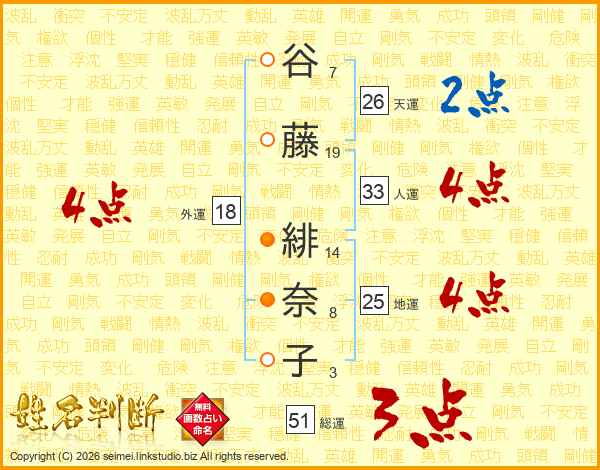 谷藤緋奈子さんの人運は33画の4点!