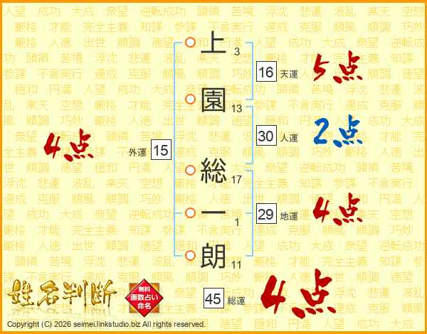 上園総一朗さんの総運は45画の4点!