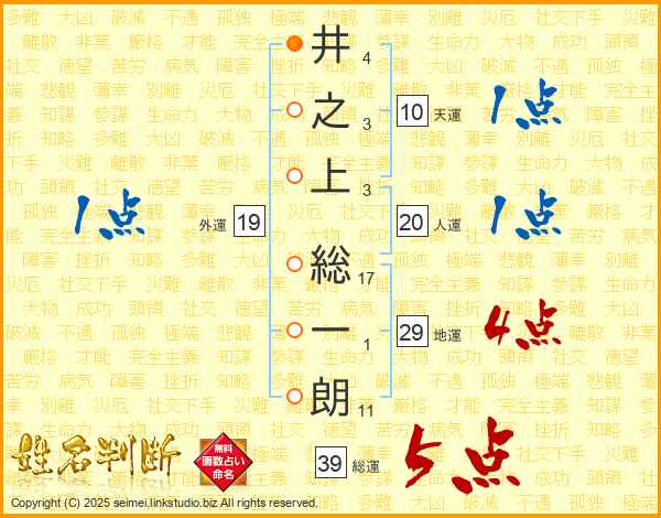 井(4画)之(3画)上(3画) 総(17画)一(1画)朗(11画)